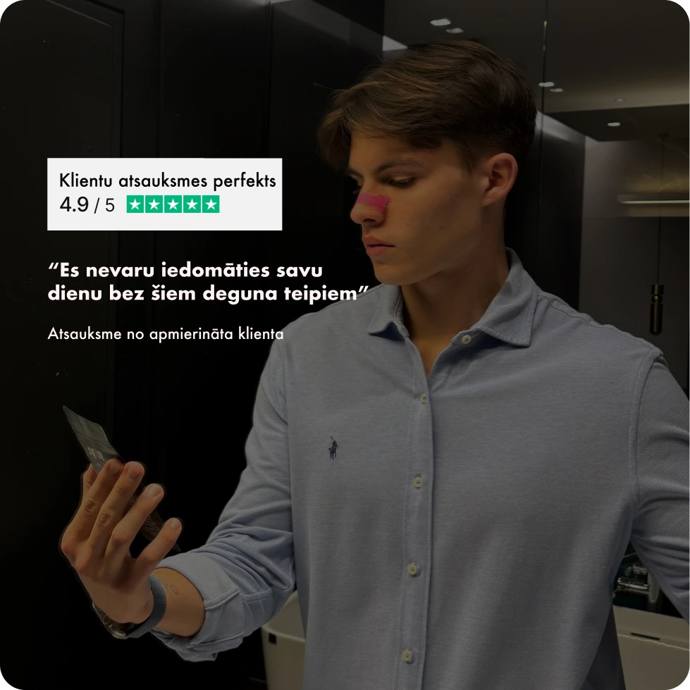 Tas ir teips, ko uzliek uz deguna. Elastīgās “atsperes”, kas atrodas sloksnītē, viegli paceļ nāsis, lai atvieglotu elpošanu.